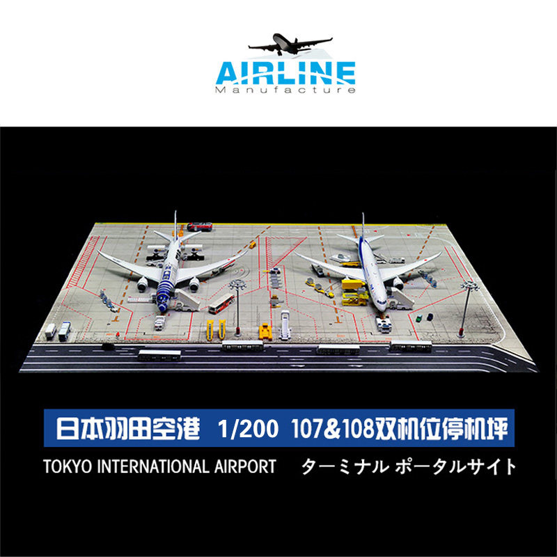 1:200 合金飞机模型ANA日本羽田机场模型图纸双机位成品木质地台热门设计联盟服务商