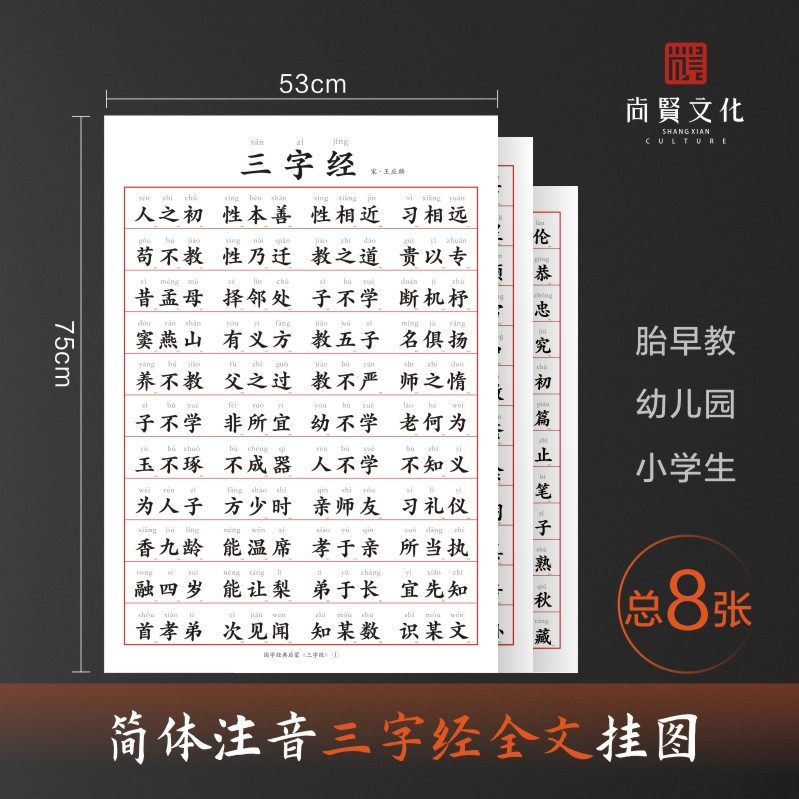 三字经全文幼儿识字挂图墙贴注音大字国学启蒙益智早教尚贤文化热门设计联盟服务商