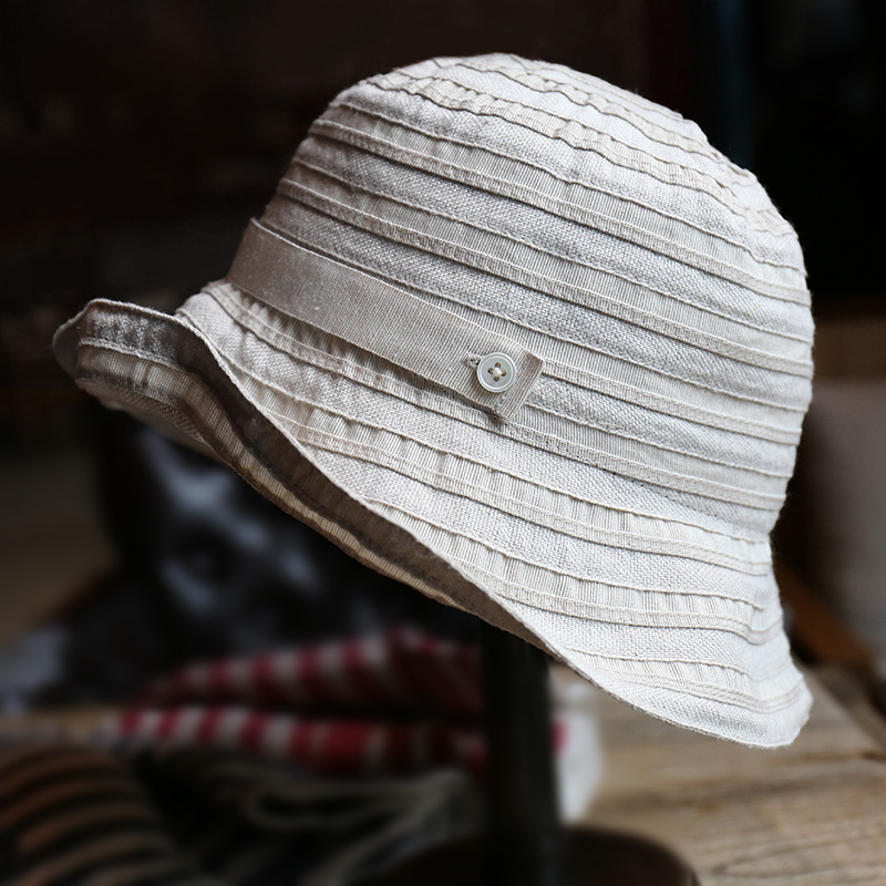 小野商 日本设计棉麻盆帽布帽文艺渔夫帽折叠沙滩遮阳帽春夏女潮热门设计联盟服务商