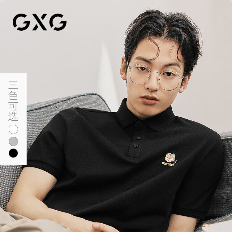 GXG男装生活系列21年商场同款夏季新品柴犬卡通刺绣POLO衫男士潮热门设计联盟服务商