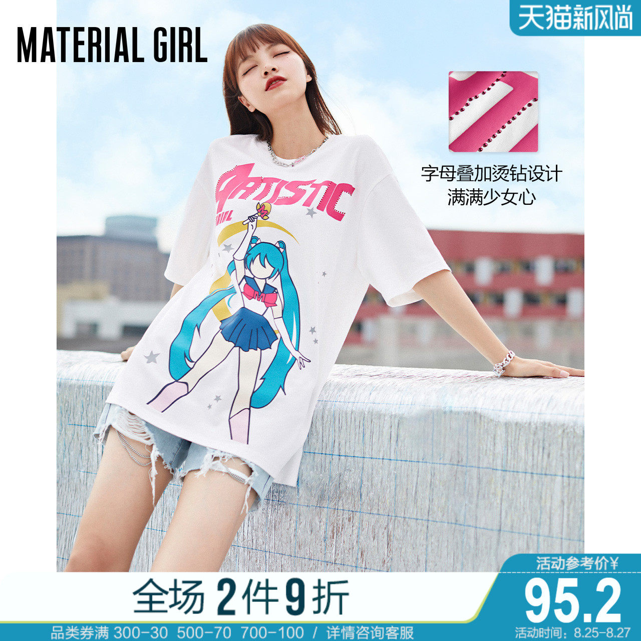 物质女孩短袖t恤女白色内搭烫钻设计感二次元宽松上衣2021夏新款热门设计联盟服务商