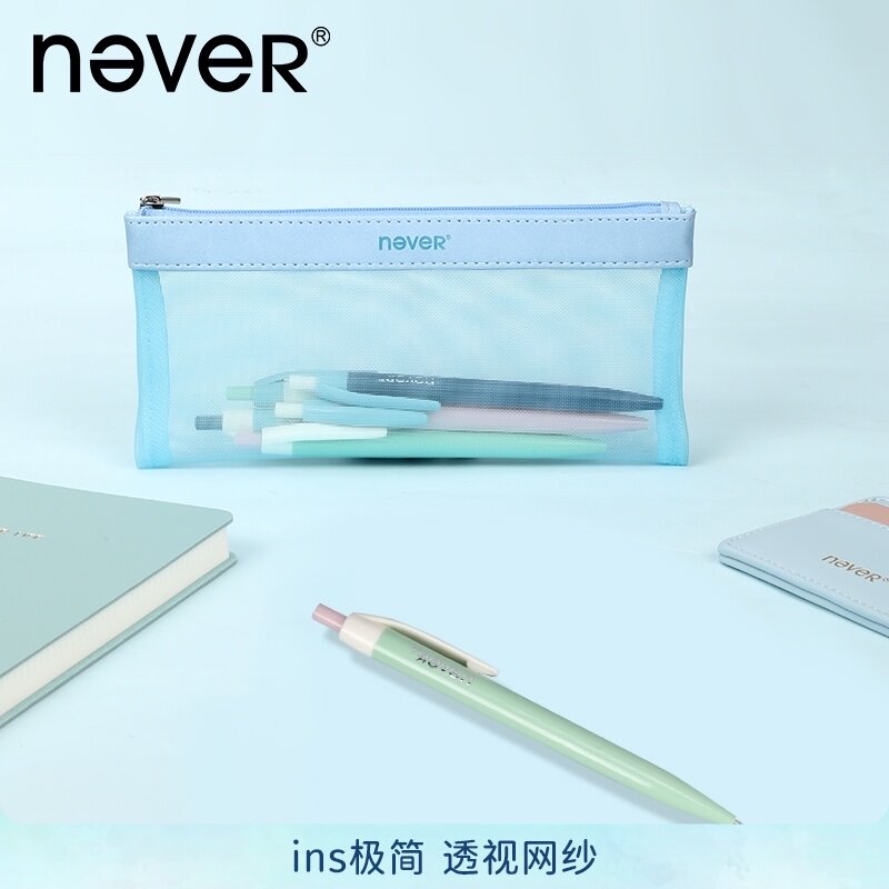 【1件包邮】never笔袋 网纱透明笔袋高级感PU皮拼接设计 笔袋ins日系原宿风 大学生北欧系列热门设计联盟服务商