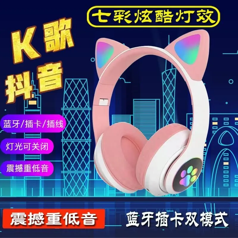 学生党发光猫耳无线头戴游戏蓝牙耳机重低音vivoOPPO苹果安卓通用热门设计联盟服务商