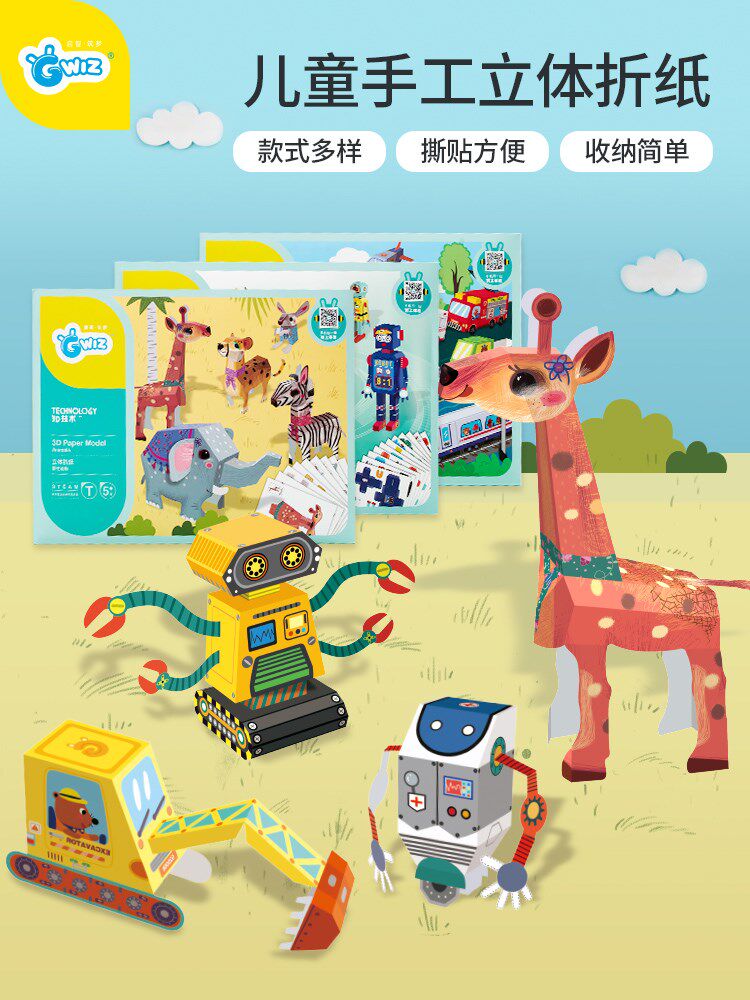 GWIZ折纸儿童手工制作玩具3D立体动物模型纸中英文diy剪纸套装热门设计联盟服务商