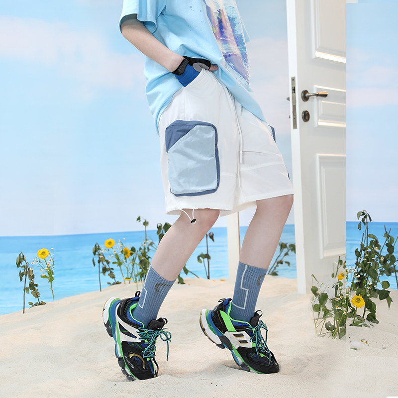 PCMY简约撞色拼接大口袋下摆松紧绳可调节艺术感百搭小清新短裤热门设计联盟服务商