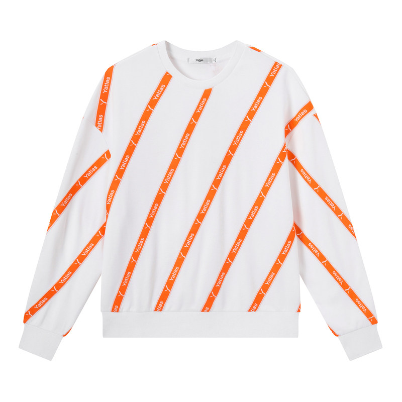 亚锐女装春季新款白色logo橘色织带环绕设计圆领卫衣热门设计联盟服务商