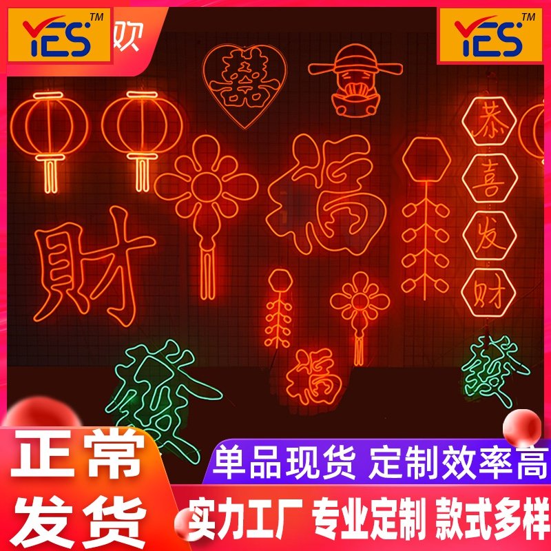 led霓虹灯带发光字定制新年快乐彩灯笼福字招牌装饰挂件喜庆包。热门设计联盟服务商