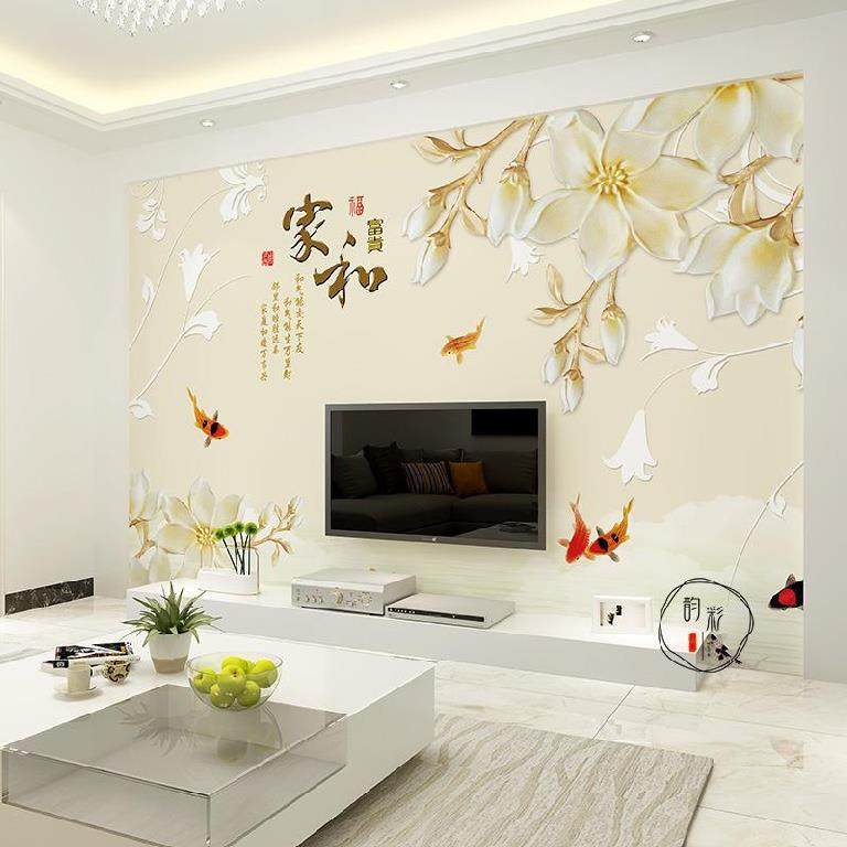 影视背景墙家用。翻新宿舍拼接壁纸大面积壁画客厅花鸟田园电视墙热门设计联盟服务商