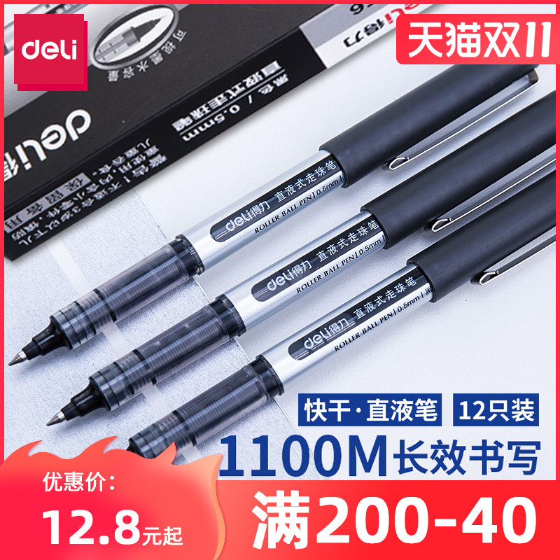 【12支装】得力文具S656直液笔直液式走珠笔水笔0.5mm全针管办公商务签字笔黑学生用中性笔书写工具热门设计联盟服务商