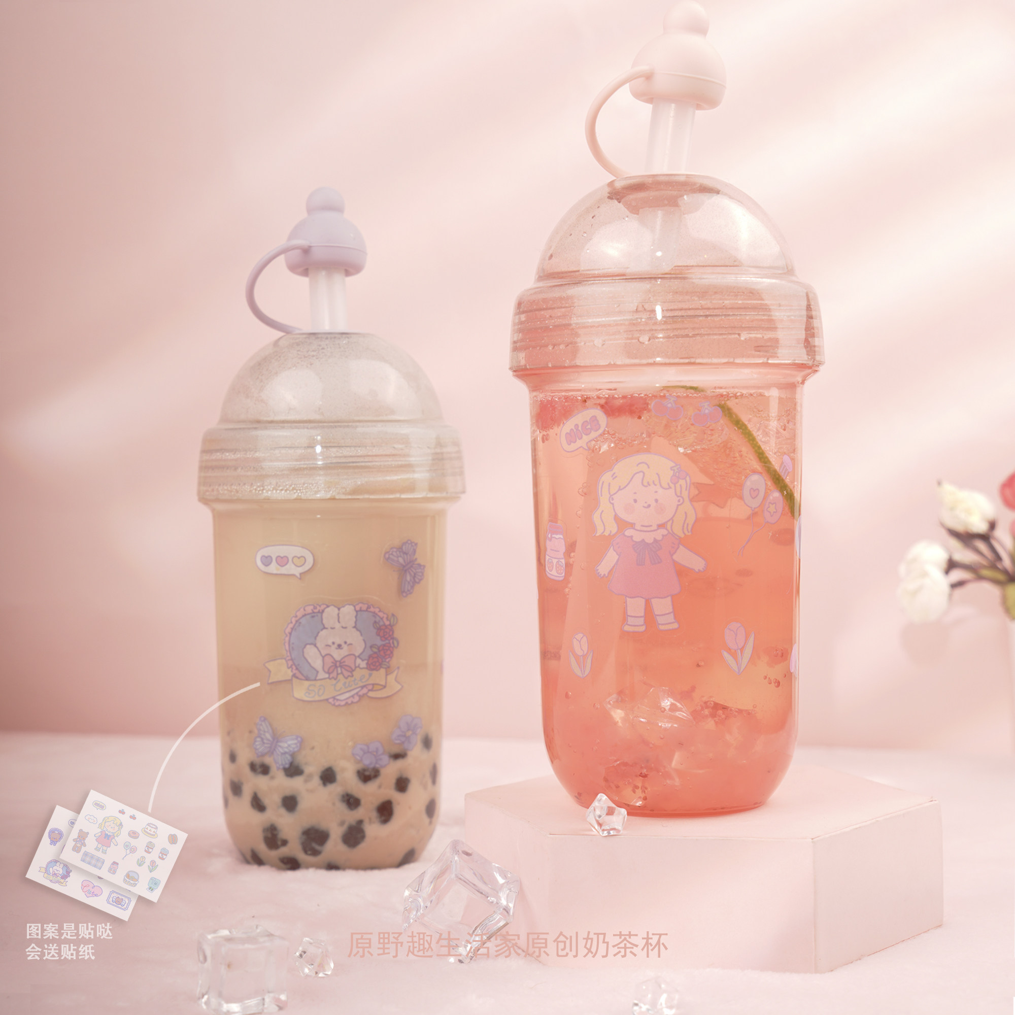 原野趣生活家原创可爱贴图珍珠奶茶吸管杯塑料水杯挂绳便携礼物杯热门设计联盟服务商