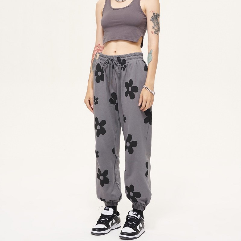 SevenJss涂鸦满印小花朵束脚男宽松长裤嘻哈国潮工装运动休闲裤女热门设计联盟服务商