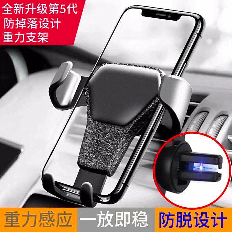 新款车载手机皮纹支架汽车重力感应支撑座卡扣式多功能出风口撑架热门设计联盟服务商