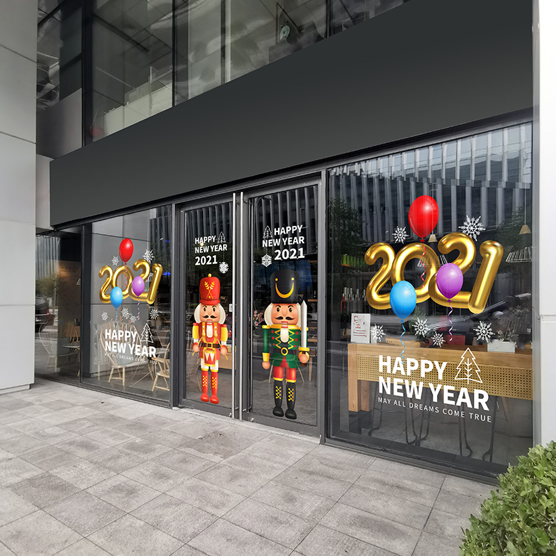 新年气球装饰贴纸卖场早教楼盘售楼中心超大橱窗贴纸布置装饰窗贴热门设计联盟服务商