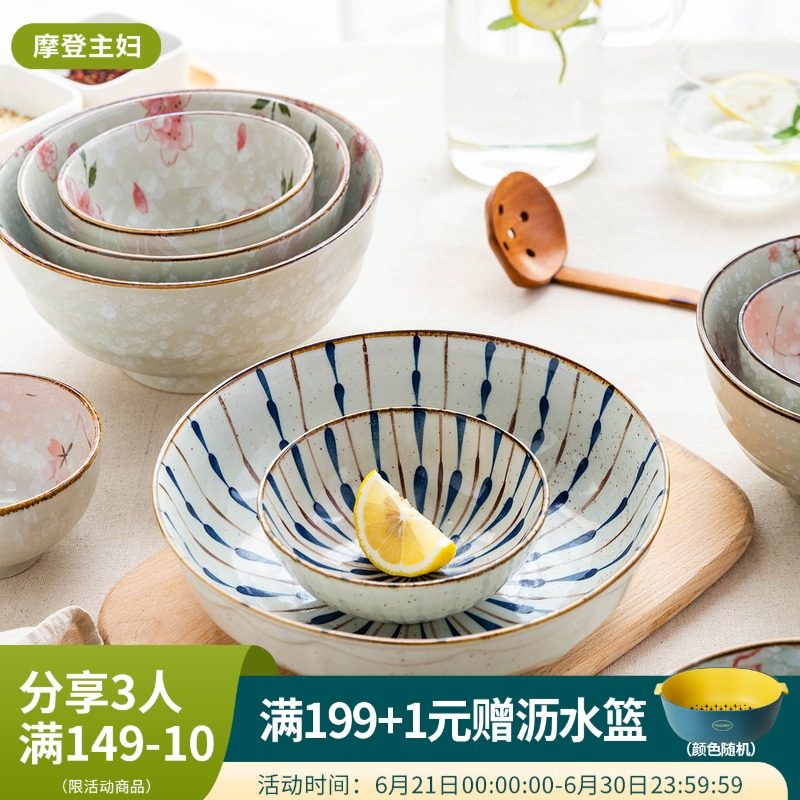 摩登主妇日式陶瓷好看的碗5寸小饭碗复古艺术6寸面碗汤碗家用餐具热门设计联盟服务商