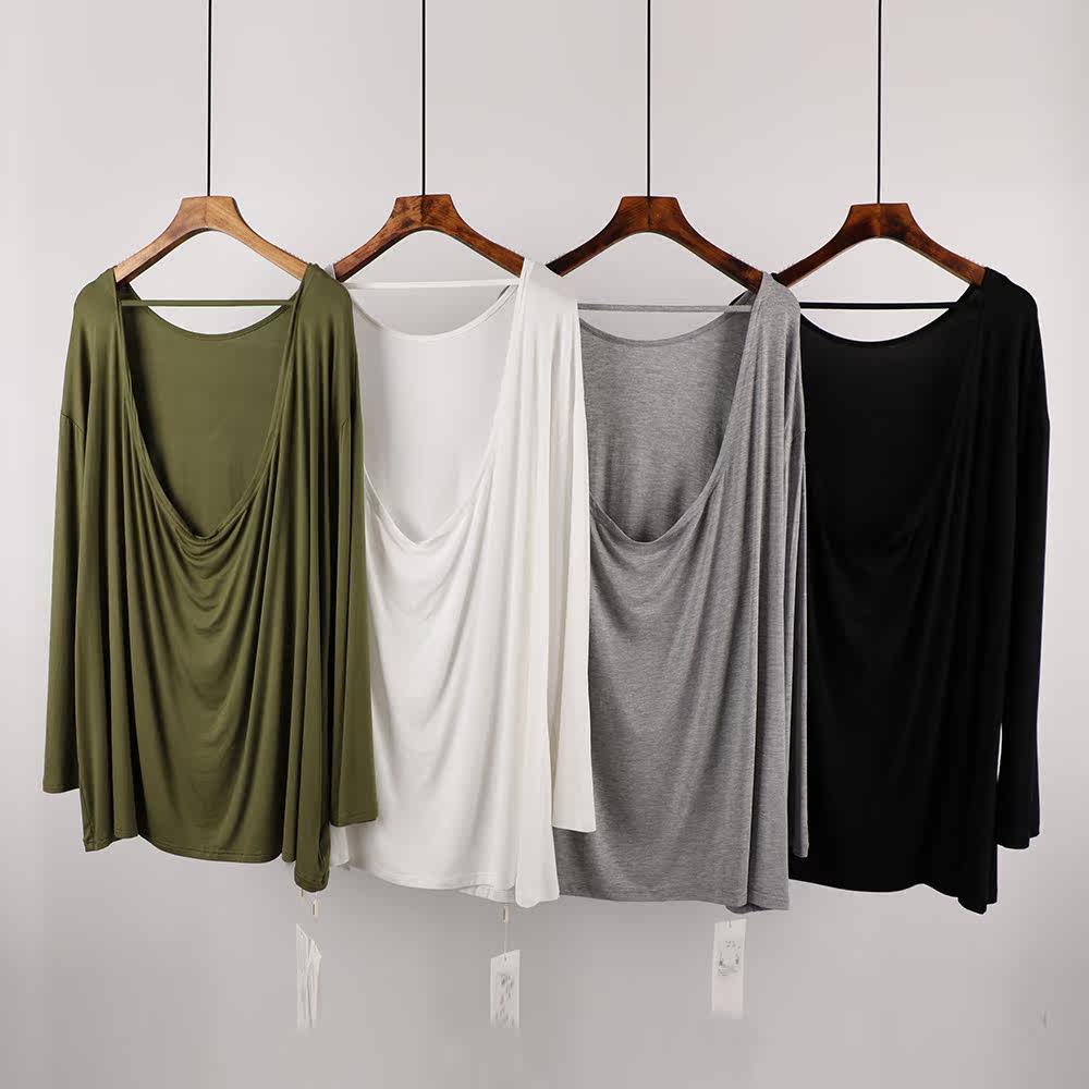 莫代尔前开叉后露背T恤女宽松大码纯色圆领舞蹈演出服饰纯色罩衫热门设计联盟服务商