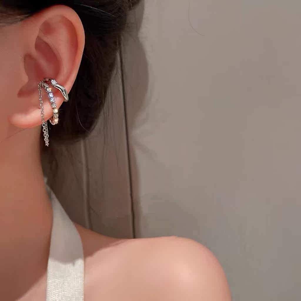 法式ins冷淡风耳夹 轻奢水钻链条耳骨夹无耳洞耳饰网红设计感女潮热门设计联盟服务商