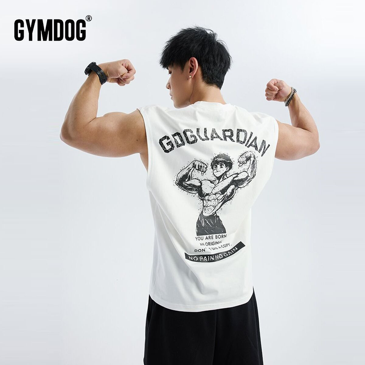 GYMDOG潮牌漫画人物健身背心男夏季跑步训练坎肩无袖运动T恤衣服热门设计联盟服务商