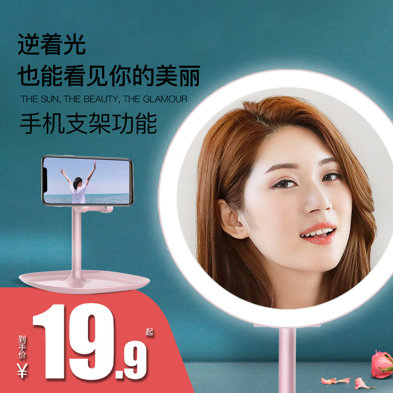 充电化妆镜可便携日光美妆少女宿舍台式桌面led带灯镜子手机支架热门设计联盟服务商