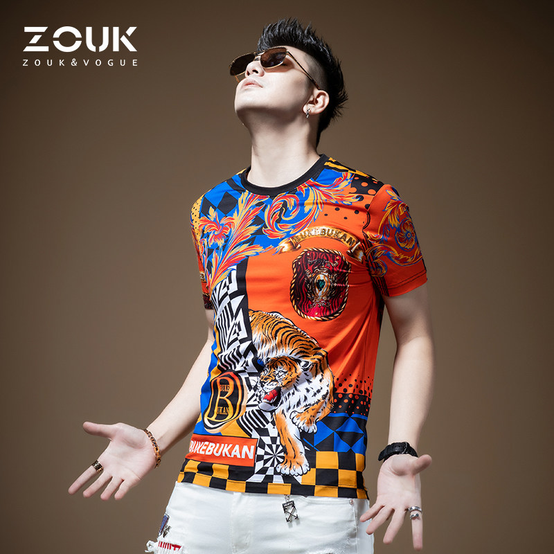 ZOUK欧货老虎数码印花短袖t恤男2021年新款潮牌百搭ins男士半截袖热门设计联盟服务商