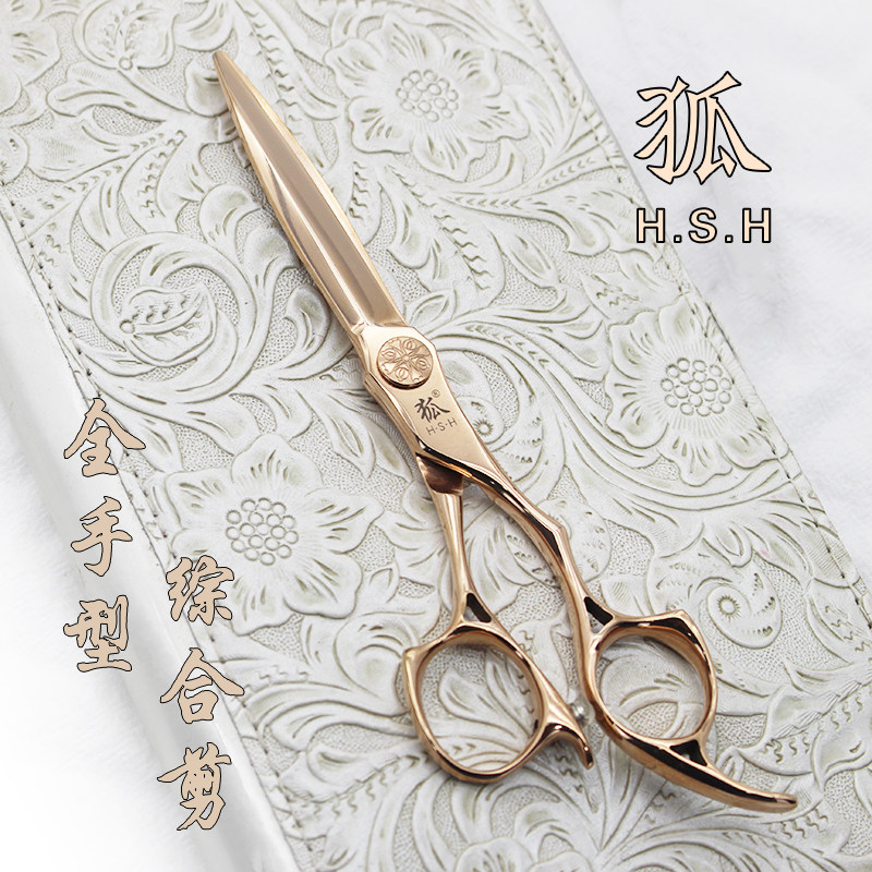正品火山狐玫瑰金美发剪刀 专业发型师全手型综合剪六寸理发平剪热门设计联盟服务商