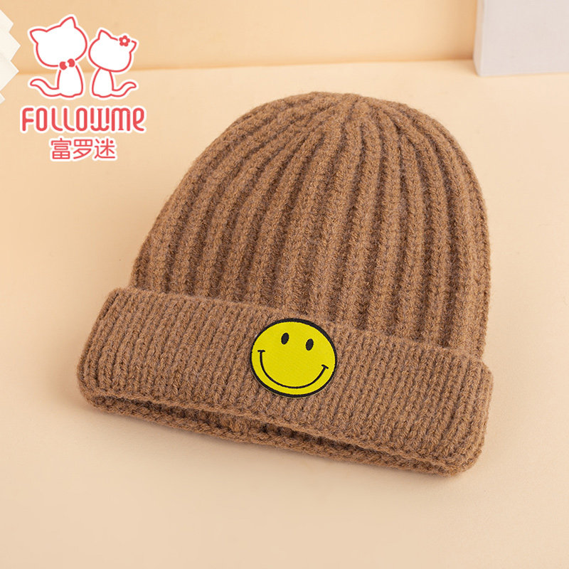 富罗迷秋冬韩国婴儿图标笑脸毛线针织帽女童保暖瓜皮套头帽子儿童热门设计联盟服务商