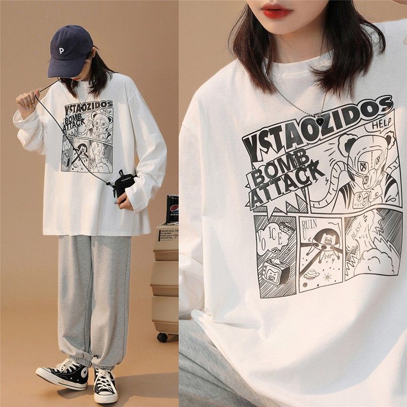 落肩长袖t恤日系女装设计感小众2022新款春秋内搭宽松打底衫上衣热门设计联盟服务商
