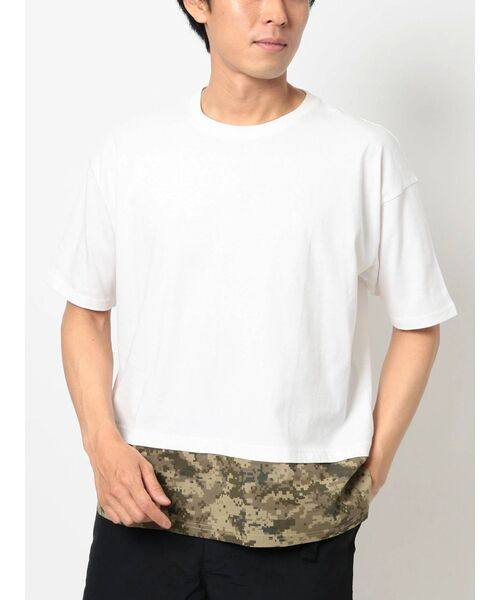 夏季新品男装短袖纯棉圆领T恤宽松版型下摆拼数码迷彩日单原单热门设计联盟服务商