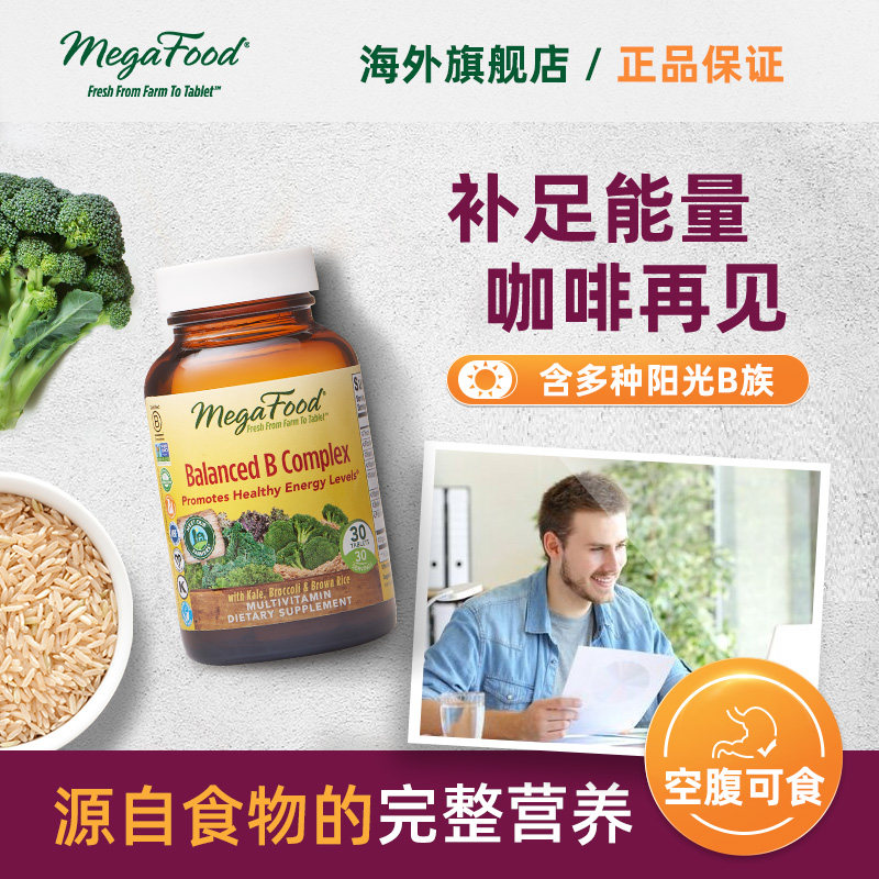 【抢先购】美国MegaFood综合维生素b族成人男性女性VB 30片*2瓶热门设计联盟服务商