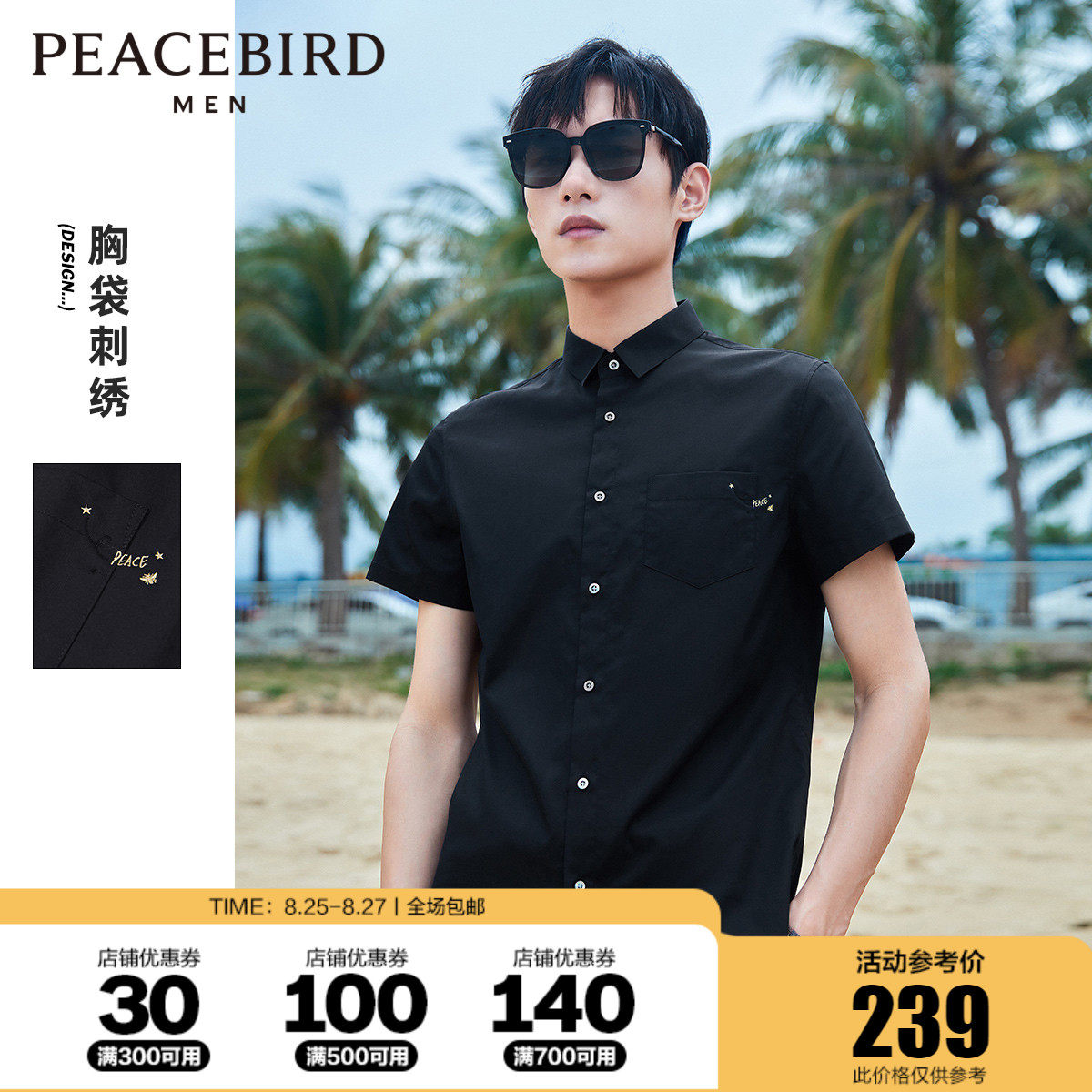 太平鸟男装 斯文短袖衬衫商务休闲衬衣寸衫韩版潮流2021夏季新款热门设计联盟服务商