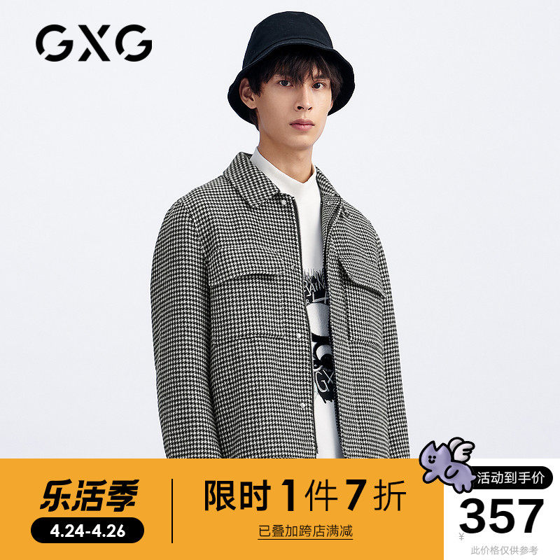 GXG男装 商场同款格纹翻领夹克男工装风衬衫式茄克外套 20年冬季热门设计联盟服务商