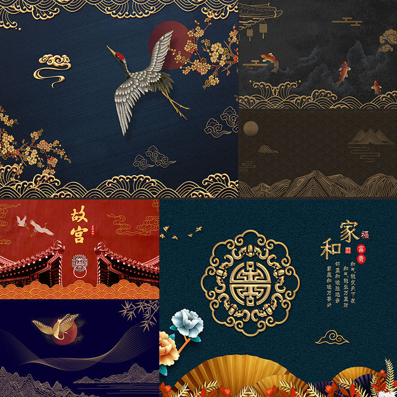 中式古典背景图案元素潮流国潮手绘插图海报背景psd设计素材模板热门设计联盟服务商