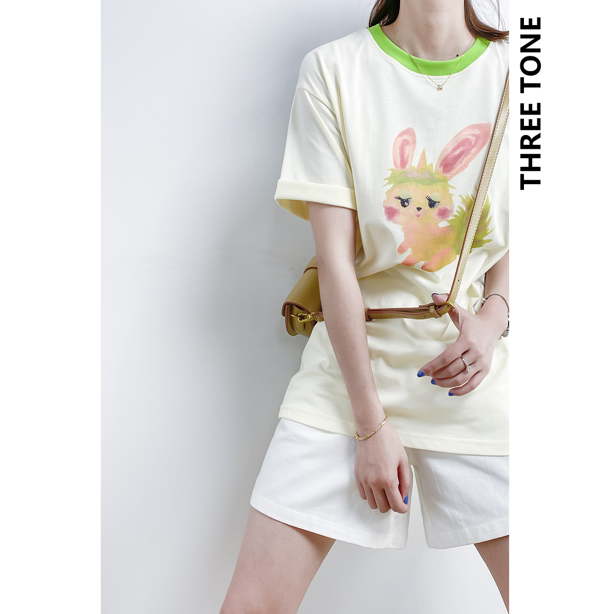 两件包邮 色调好艺术!水墨卡通兔子撞色圆领宽松慵懒短袖T恤女夏热门设计联盟服务商