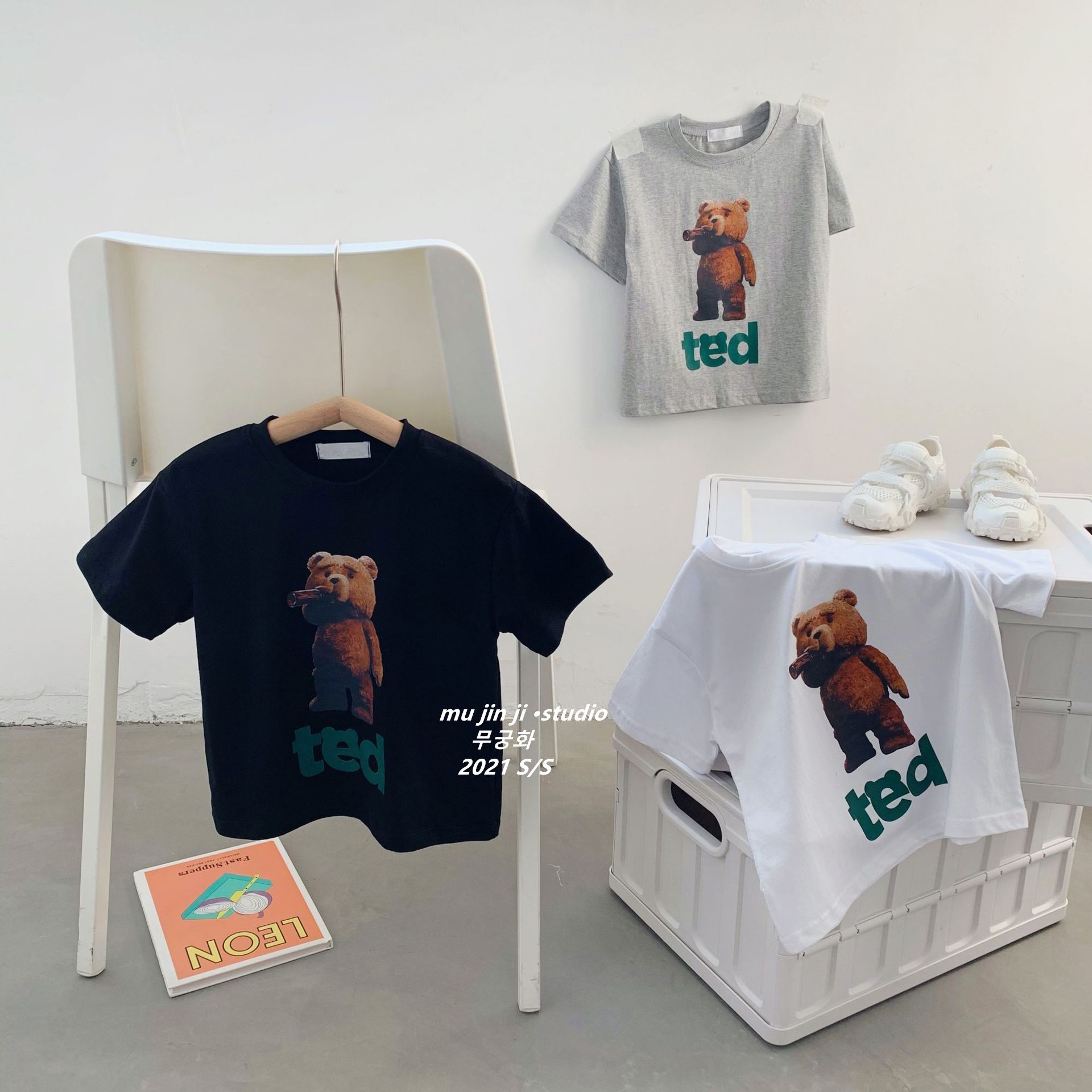 2021春夏男女童洋气纯棉数码小熊短袖T恤宝宝时髦百搭打底上衣潮热门设计联盟服务商