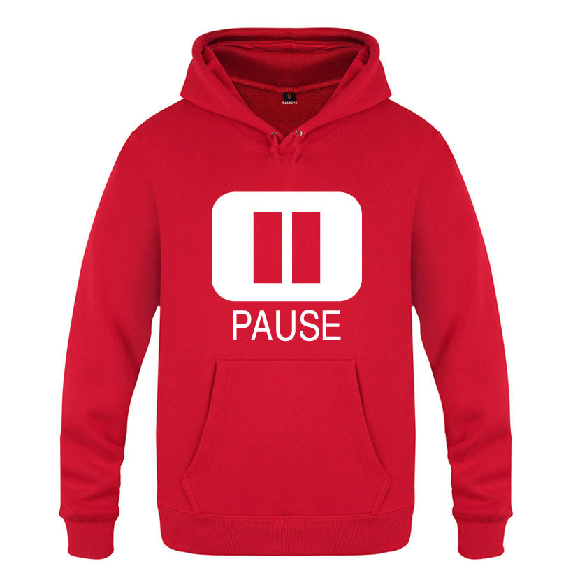 抓绒男式连帽卫衣 Pause 暂停图标 字母 个性创意厂家直销热门设计联盟服务商