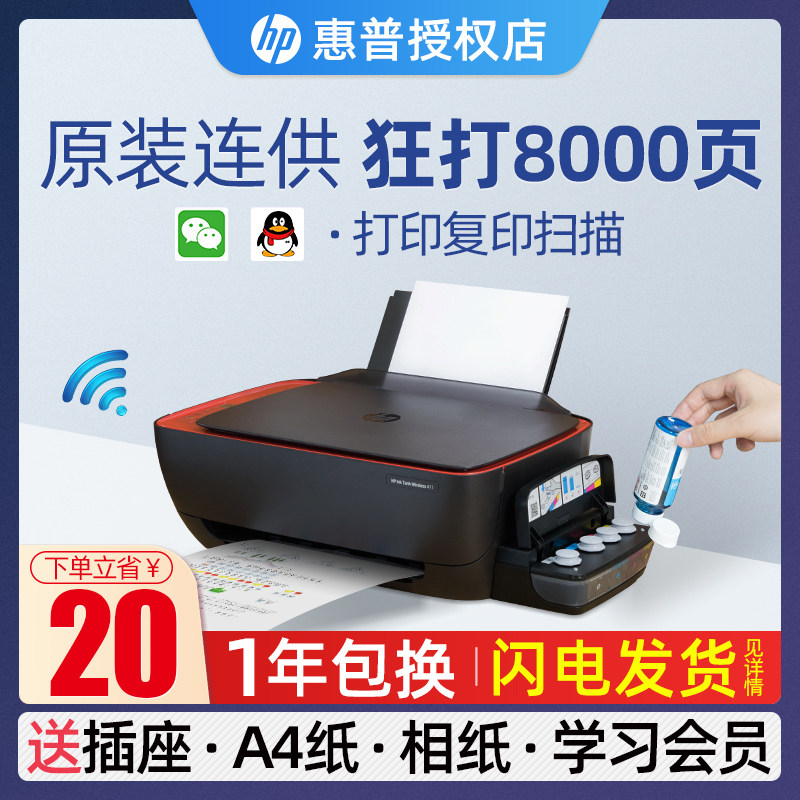 hp惠普Tank411彩色喷墨连供连接手机无线打印复印扫描一体机A4办公室照片519小型迷家用510商务410墨仓式5820热门设计联盟服务商